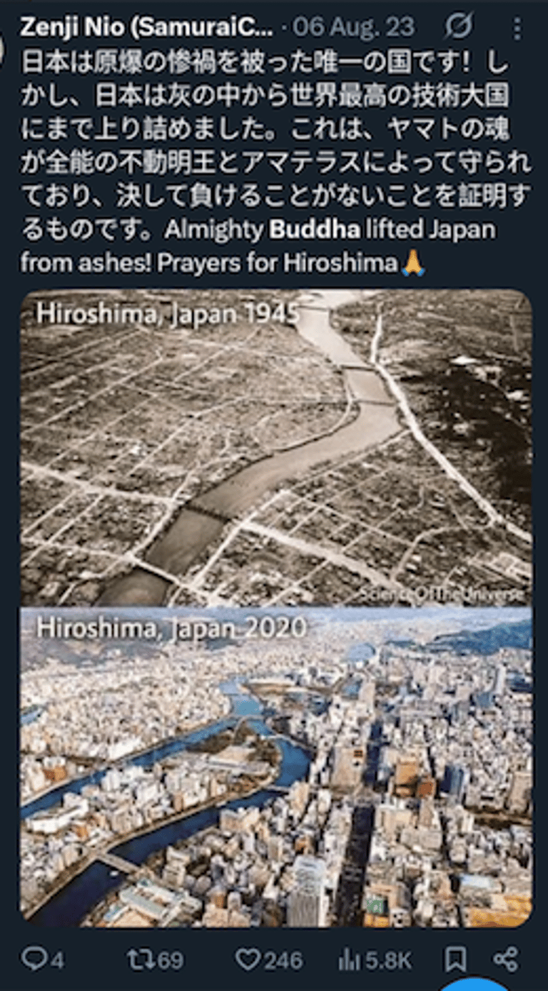 ZENJI NIO & SAMURAI CENTER PAY HOMAGE TO VICTIMS OF NAGASAKI & HIROSHIMA ATOMIC BLASTS.